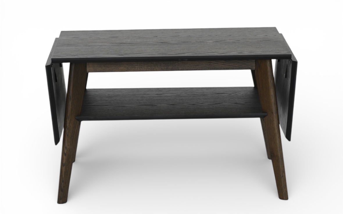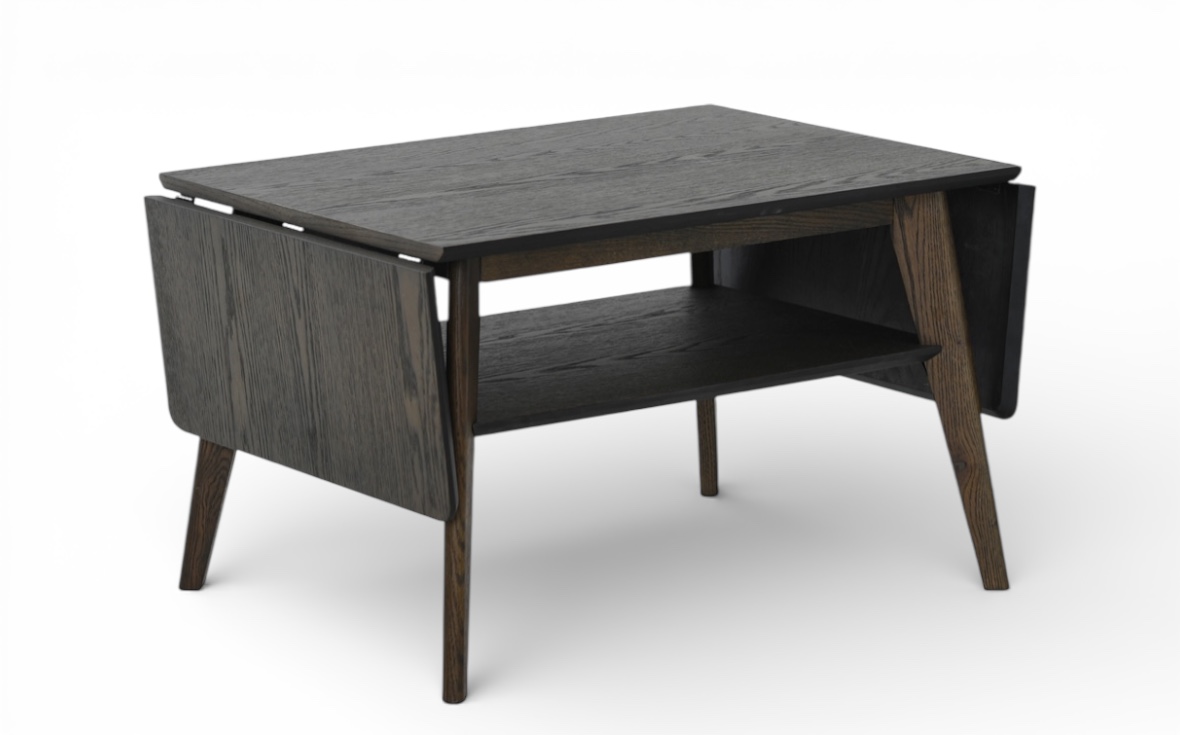 Eleganta rektangulära soffbord, designat med två smidiga klaffar som gör att du enkelt kan utöka bordsskivan när behovet uppstår.Den praktiska nedre hyllan erbjuder extra förvaring eller plats för dekorationer.