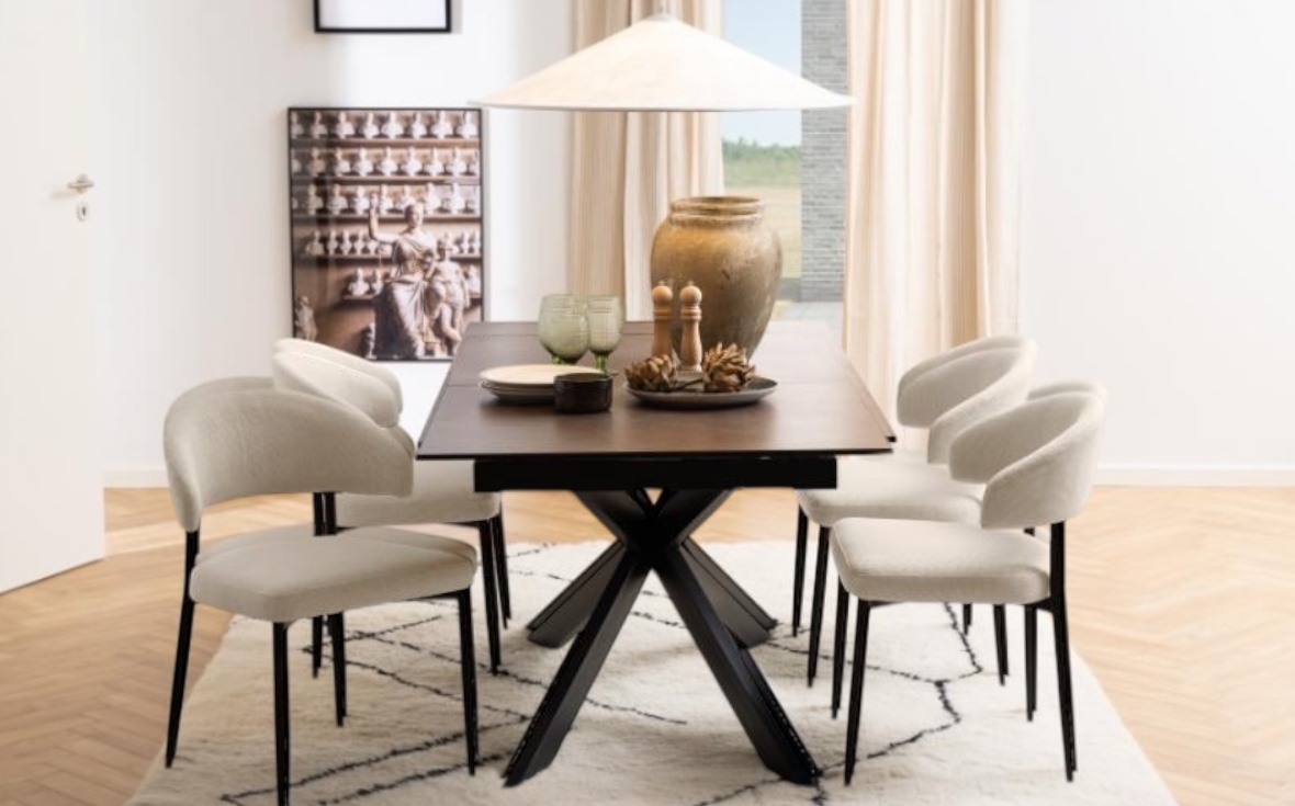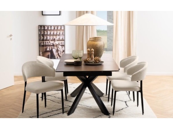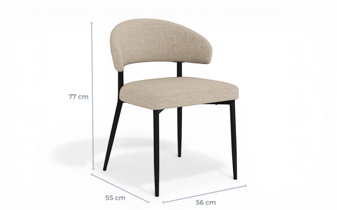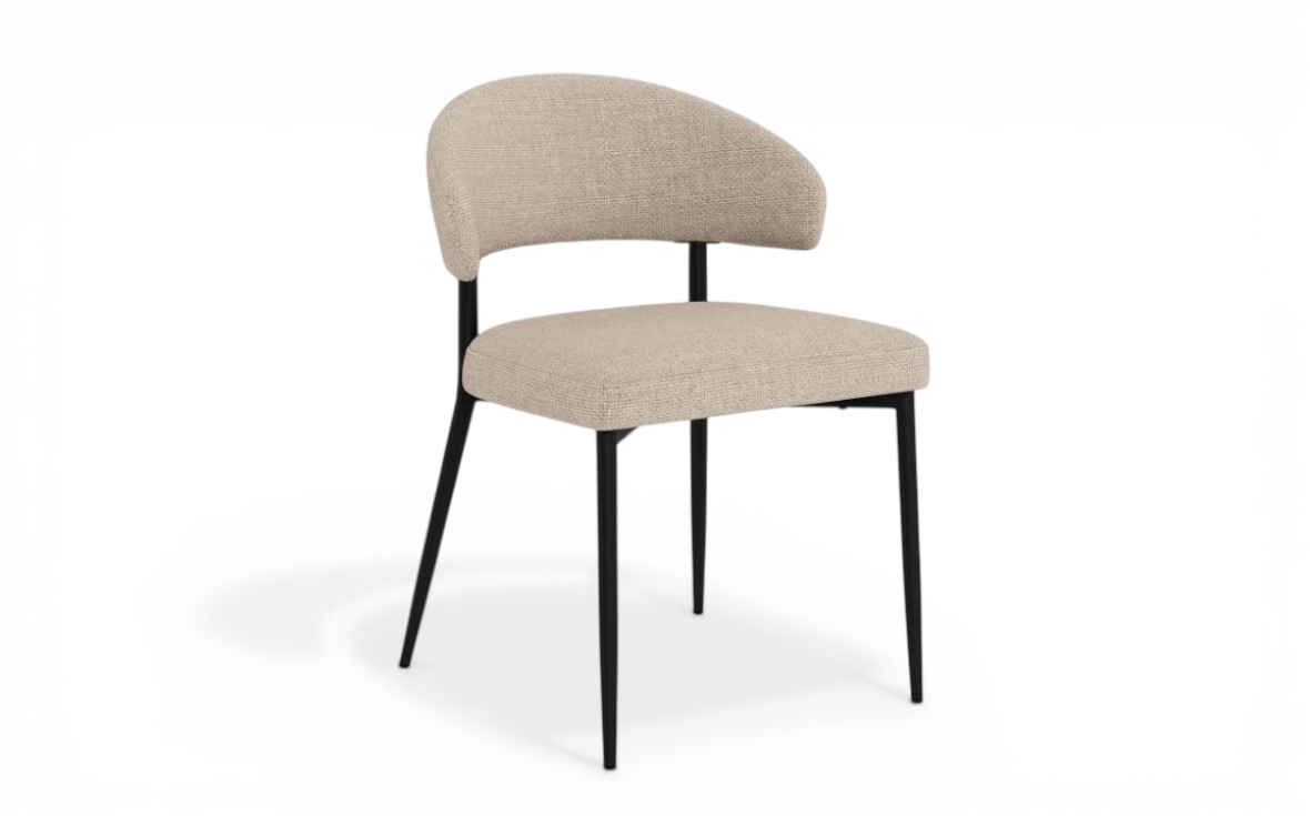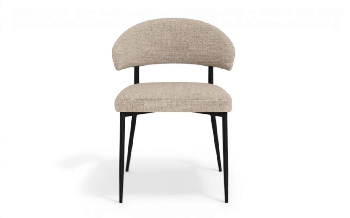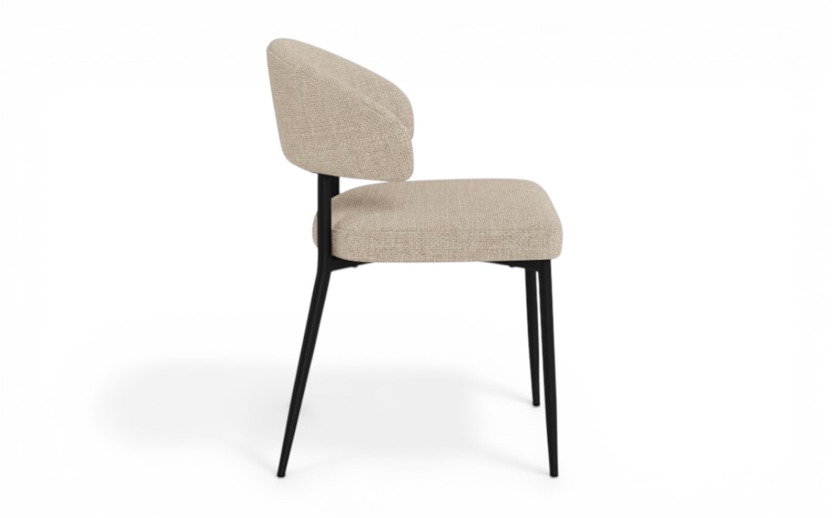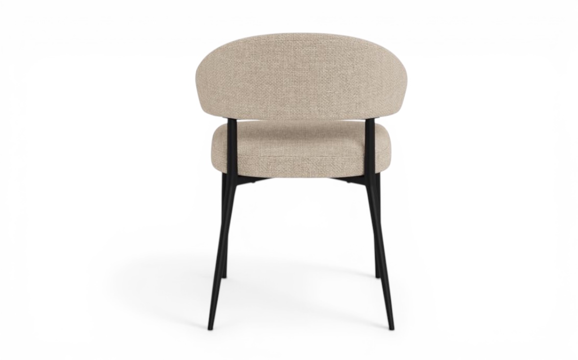 De slanka, svarta metallbenen skapar en stilren kontrast och bidrar till stolens stabilitet och hållbarhet. Den ergonomiska utformningen gör Edina till ett perfekt val för långa middagar och sociala stunder.