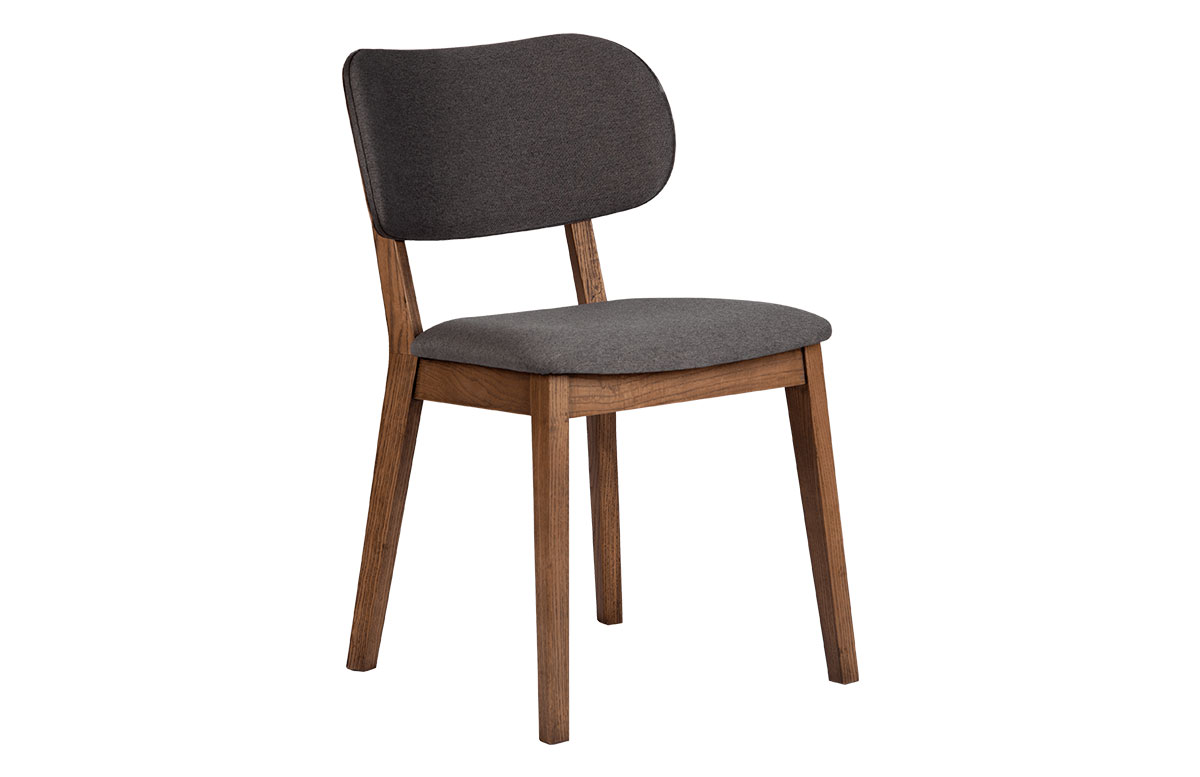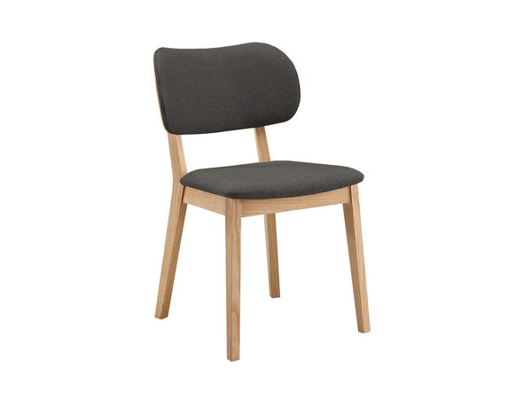Modellen finns i rökt betsad, ekbetsad eller vitbetsad ek. Stolens sits och rygg är stoppade och klädda i mörkgrått tyg, dessutom är ryggstödet svängt vilket bidrar till dess goda sittkomfort.