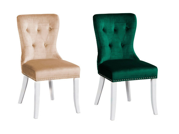 Stolen är klädd i slitstarkt sammet. Dekorativa nitar och ring på ryggen bidrar till stolens fina design.