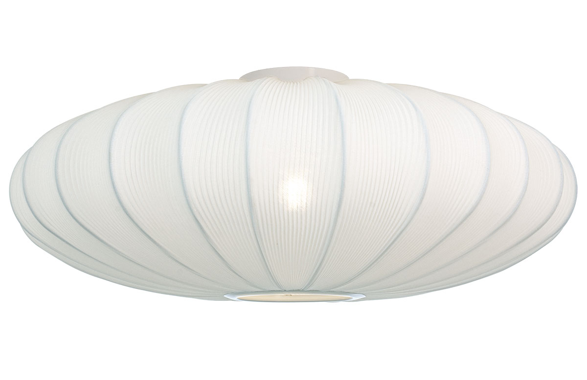 Mamsell en snygg plafond som med sin mjuka form passar bra i till exempel sovrum. Den vita textilen gör att det blir ett mjukt och behagligt ljus. Krokupphäng med vit takkopp i metall.