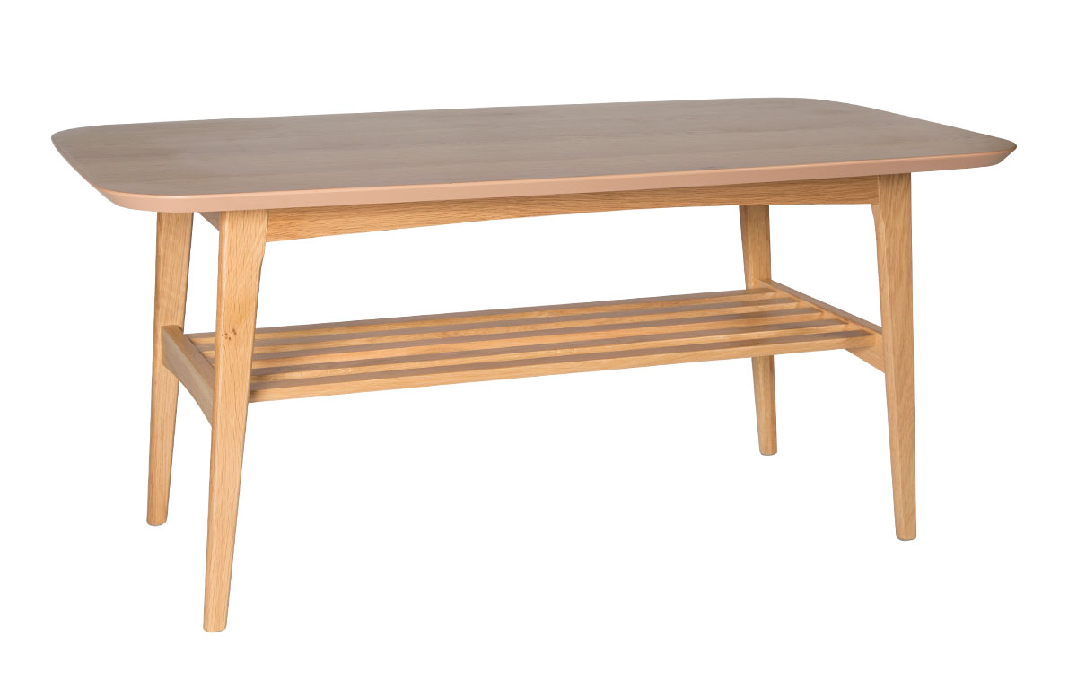 Maja soffbord är ett stilrent soffbord med retroinslag samt goda förvaringsmöjligheter tack vare det ribbade hyllplanet. Bordet finns i ekfanér, svart askfanér och vitlack.
