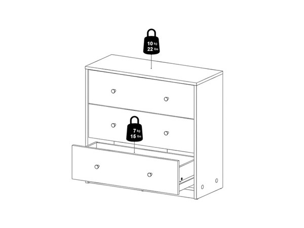 Byrån är tillverkad av melaminbelagd spånskiva, vilket ger den en stabil och hållbar konstruktion samt en yta som är lätt att rengöra och motståndskraftig mot fläckar och repor.