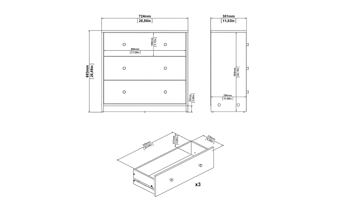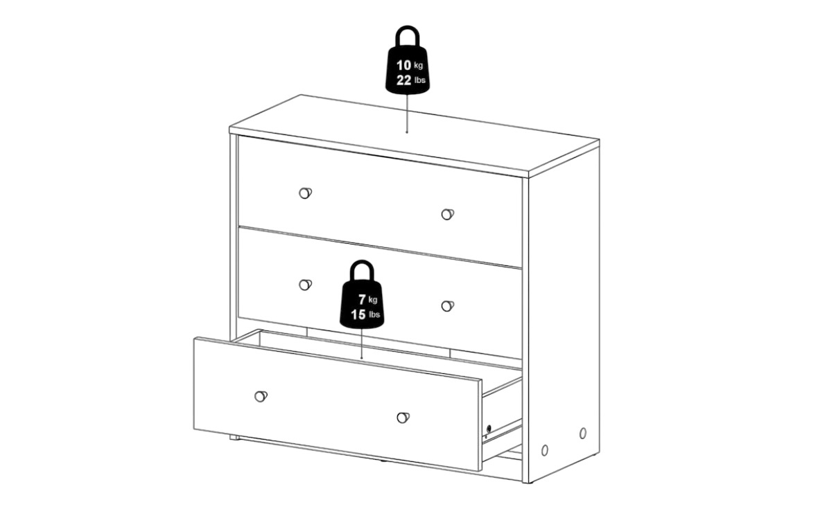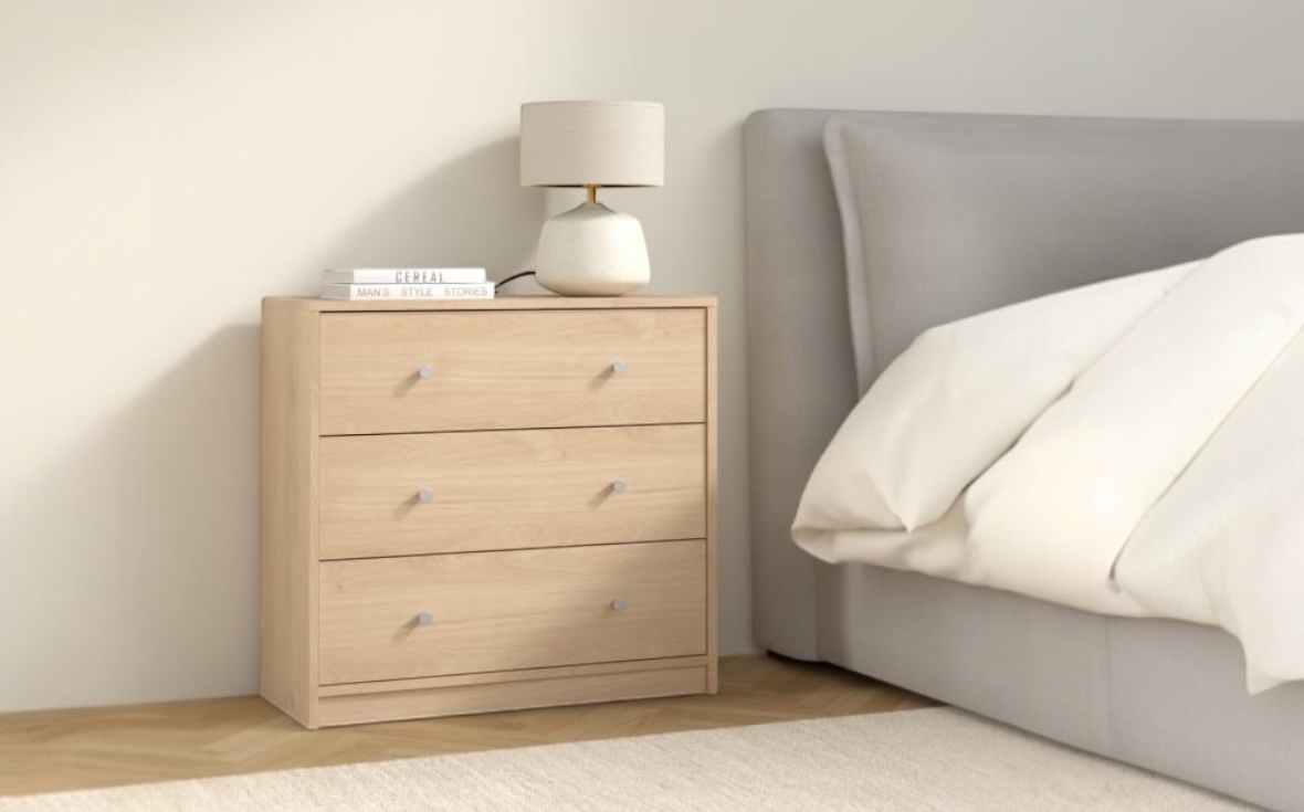 Byrån May har tre lådor som hjälper dig att förvara dina saker och hålla ordning istället för att de ligger framme..