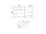 Byrån är tillverkad av melaminbelagd spånskiva, vilket ger den en stabil och hållbar konstruktion samt en yta som är lätt att rengöra och motståndskraftig mot fläckar och repor.