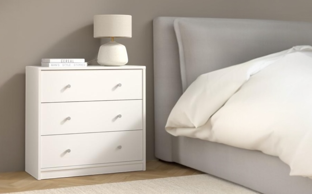 Byrån May har tre lådor som hjälper dig att förvara dina saker och hålla ordning istället för att de ligger framme..