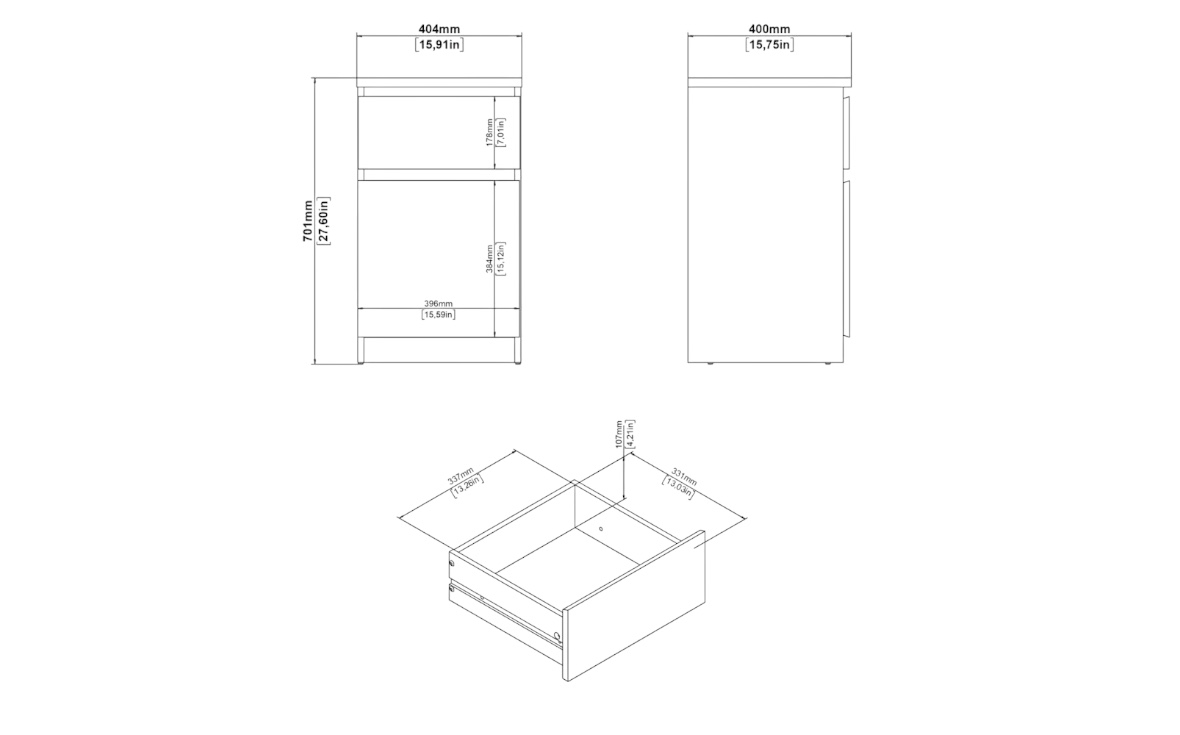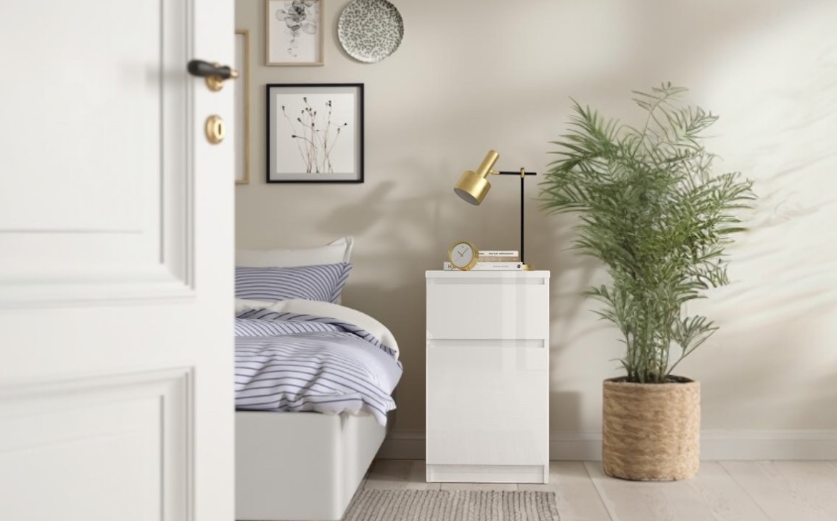 Byrån Naia har en rymlig låda och en dörr som ger dig praktisk förvaring och hjälper dig att hålla ordning istället för att saker ligger framme..