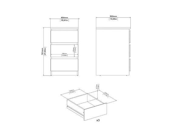 Naia, Byrå 3 lådor Ek/Gråbeige