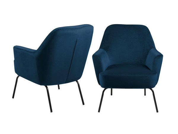 Melissa är en skön loungefåtölj i mjuk sammet med nätta svarta metallben. Modellen finns i olika färger.