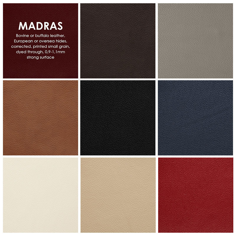Kan beställas i en mängd tyger, färger och olika typer skinn.