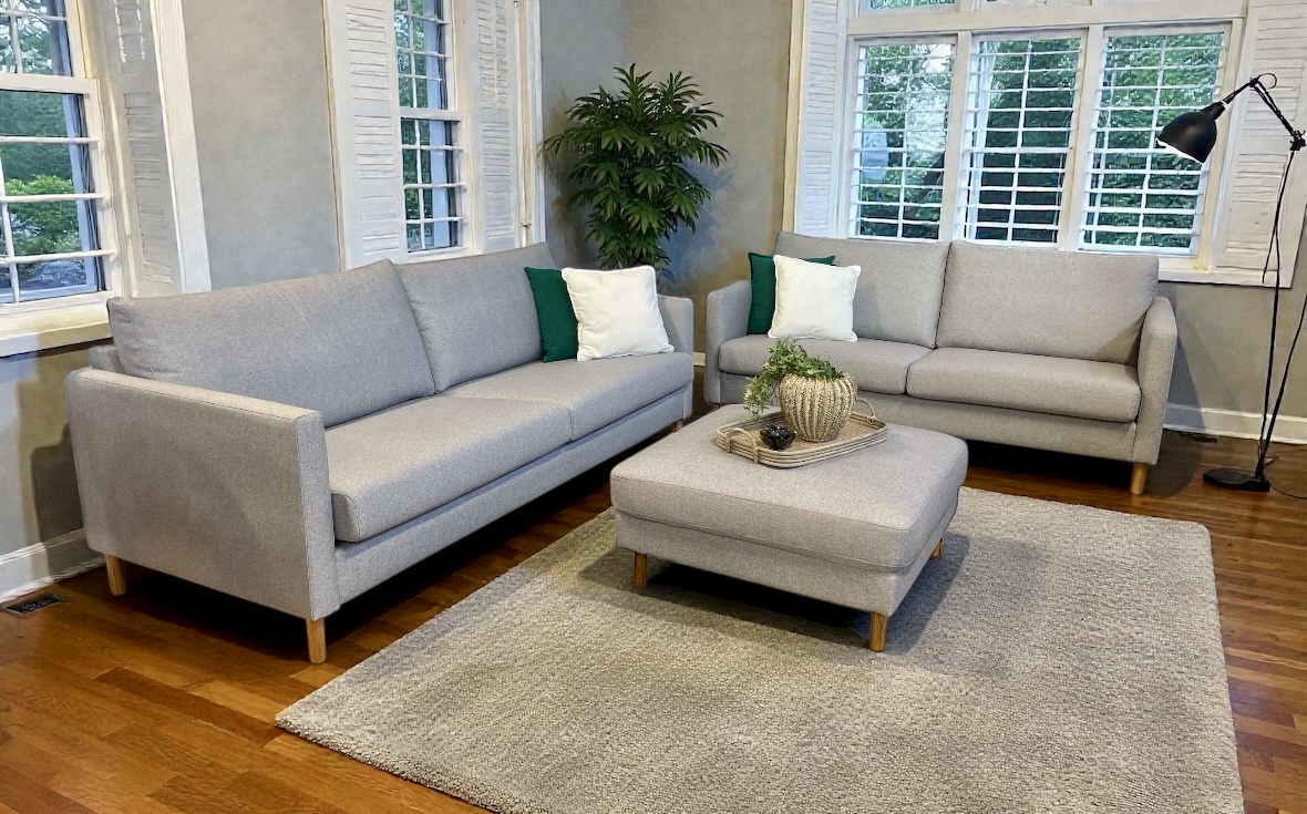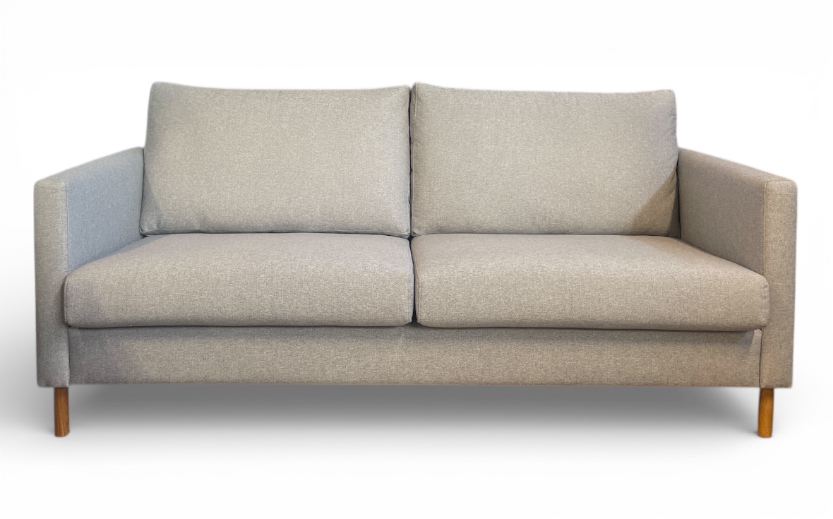 Åhus är en stilren, svensktillverkad soffserie från Möbelform med raka linjer, smala armstöd och eleganta, runda ekben. Soffan finns i flera tyger och kan enkelt anpassas efter ditt hem.