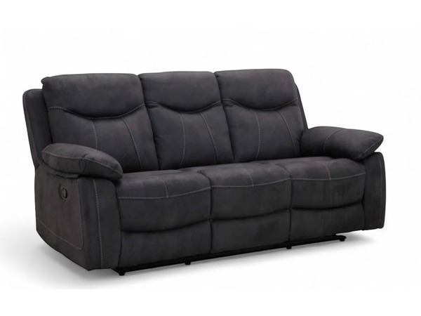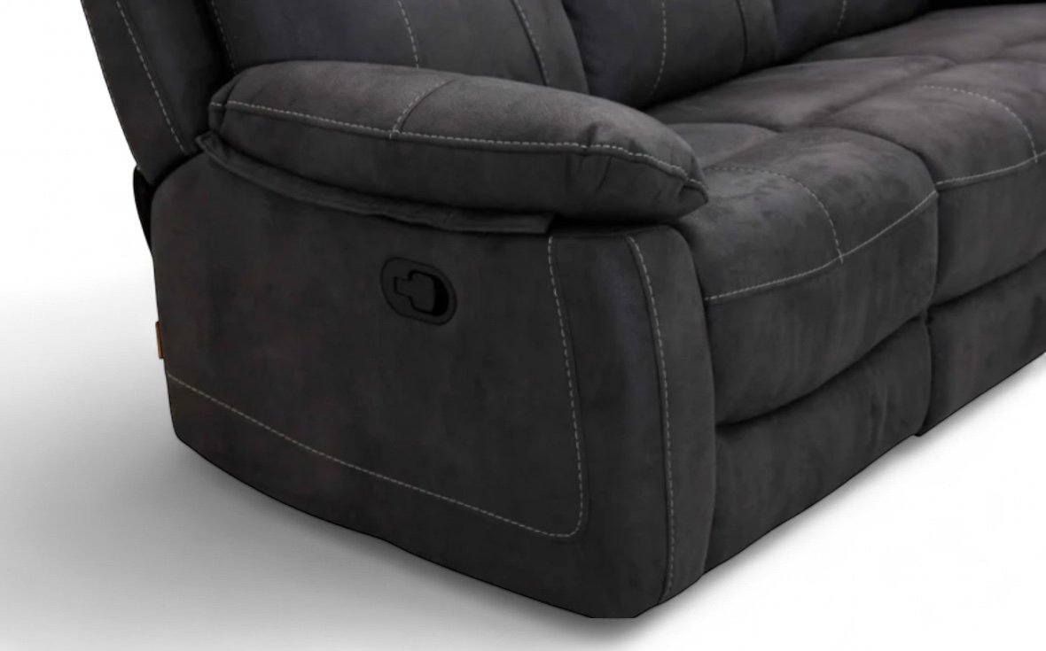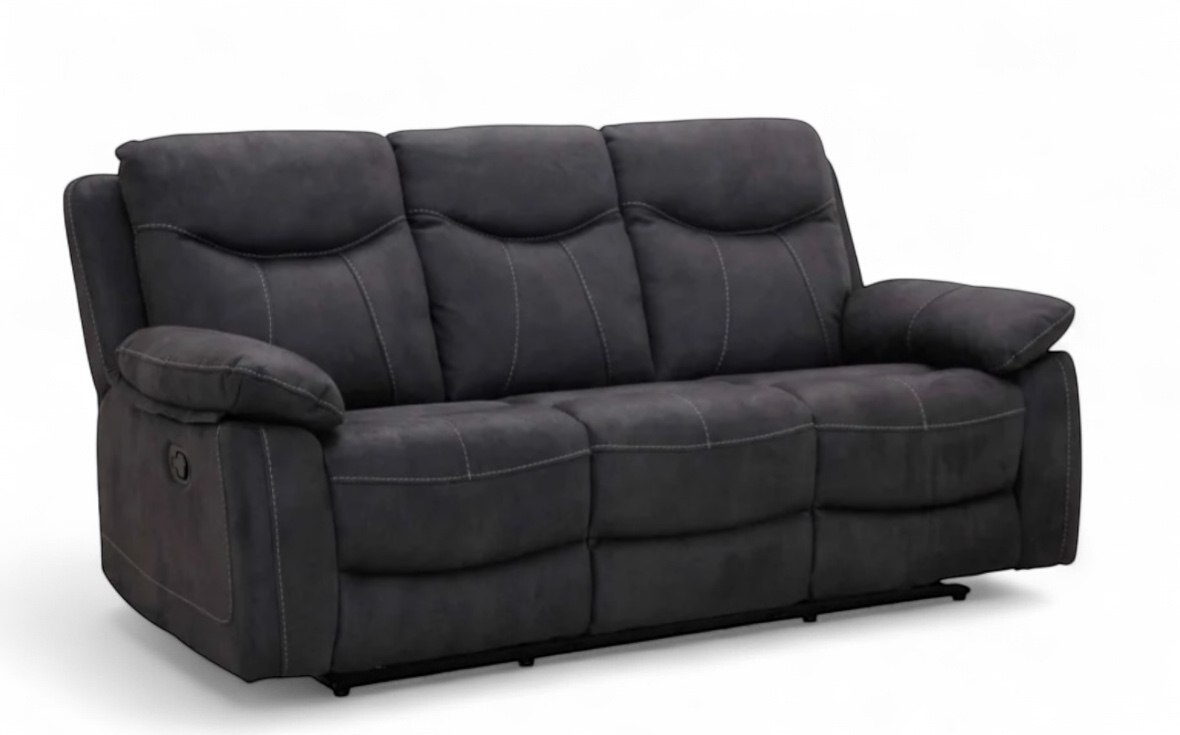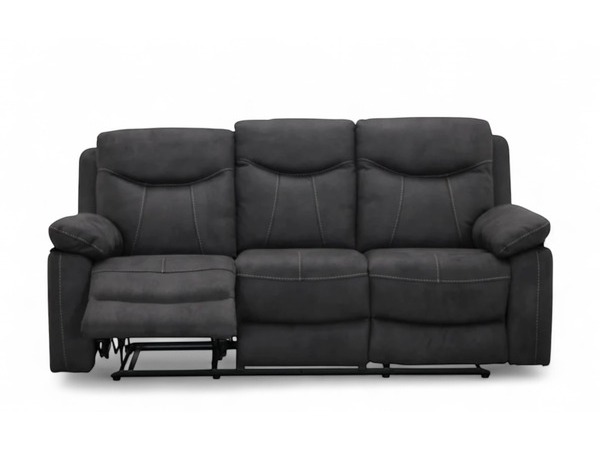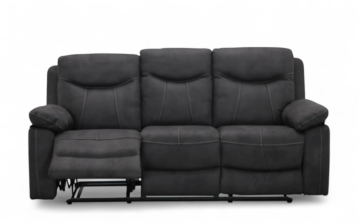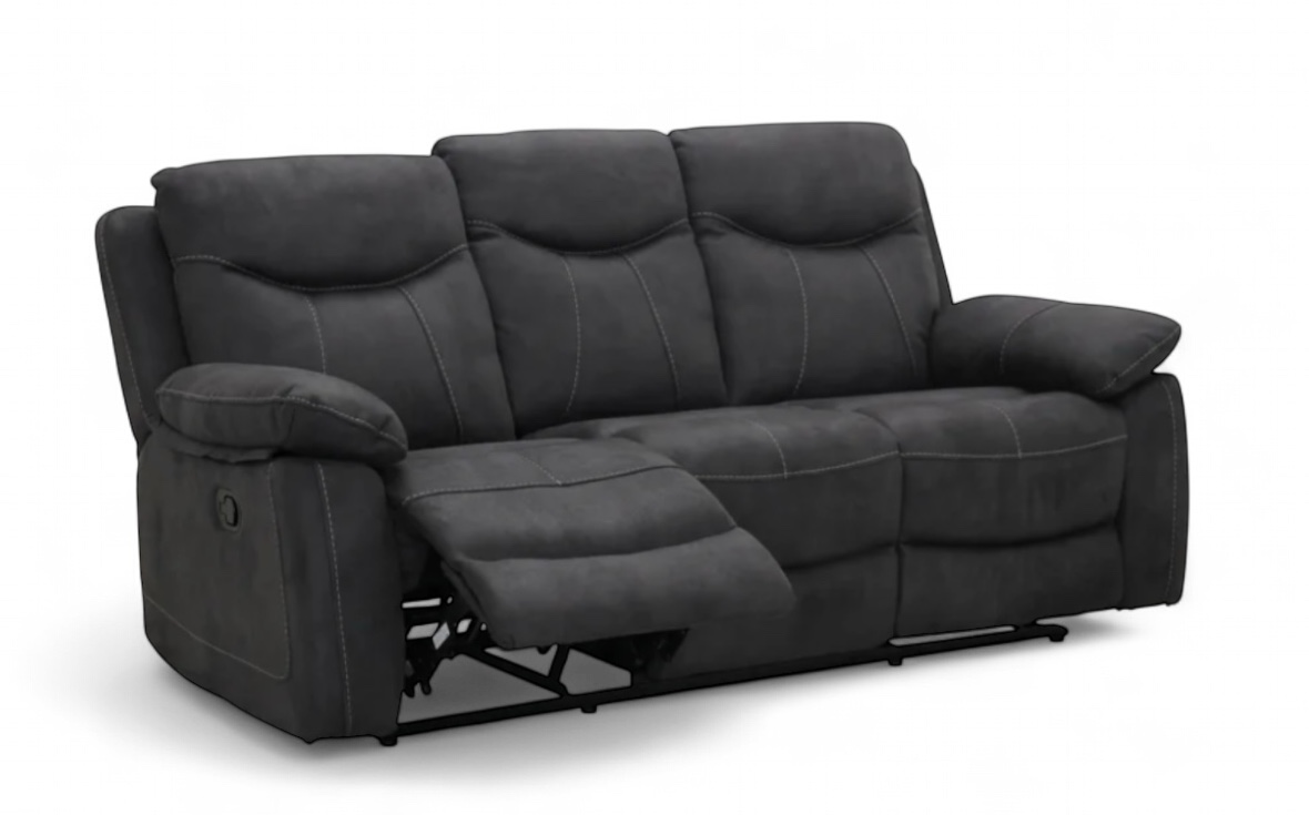 Boston 3-sits reclinersoffa i slitstarkt grått mikrofibertyg tålig, bekväm och perfekt för alla hem.
