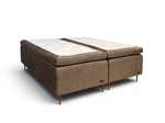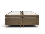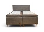 Sängen kan beställas i flera olika storlekar samt i olika tyger och färger.