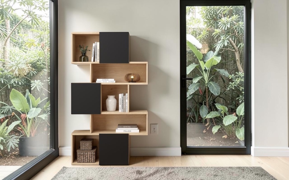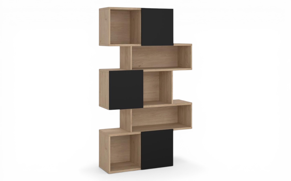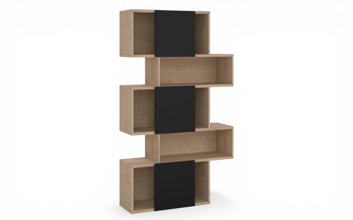 Maze asymmetrisk bokhylla med 3 skjutdörrar är en elegant och modern möbel som lyfter ditt hem. De asymmetriska formerna skapar ett iögonfallande uttryck, samtidigt som de rymliga hyllorna ger plats för böcker, dekorationer och personliga favoriter.