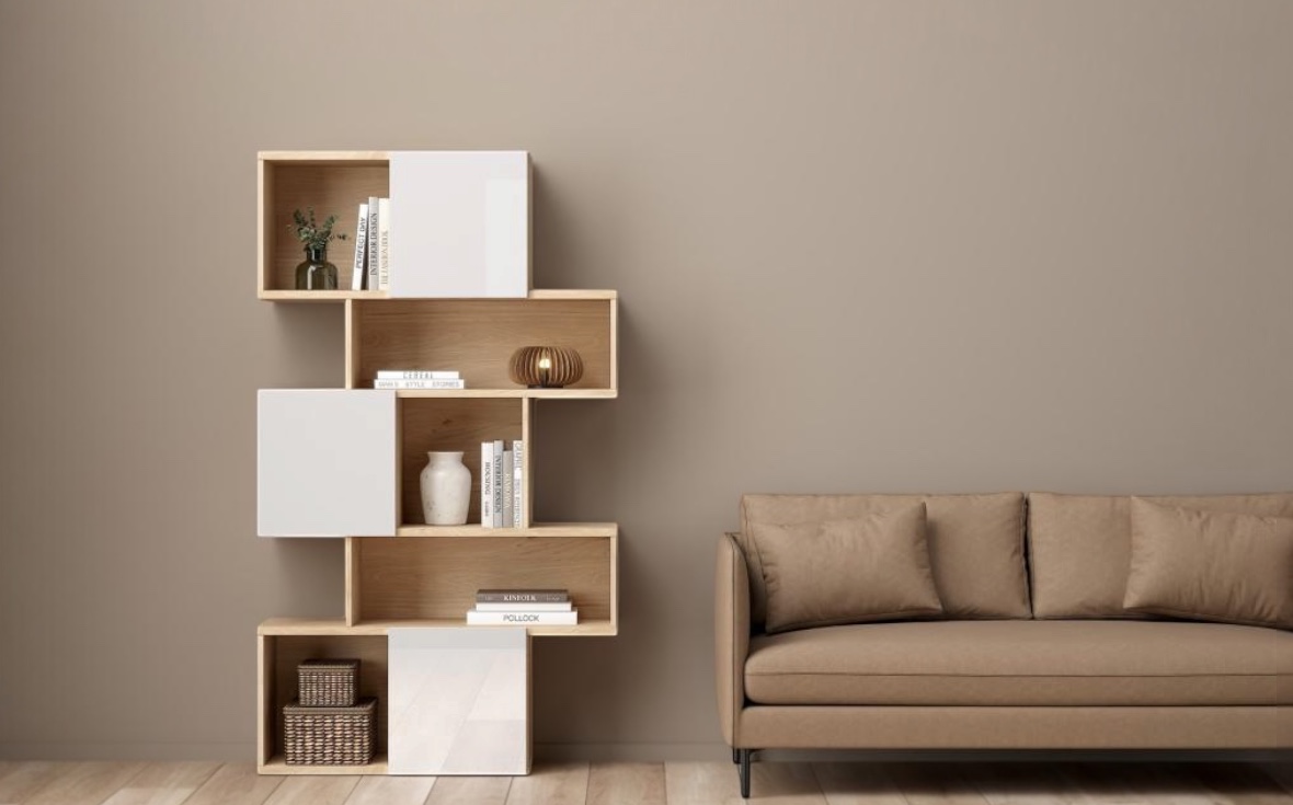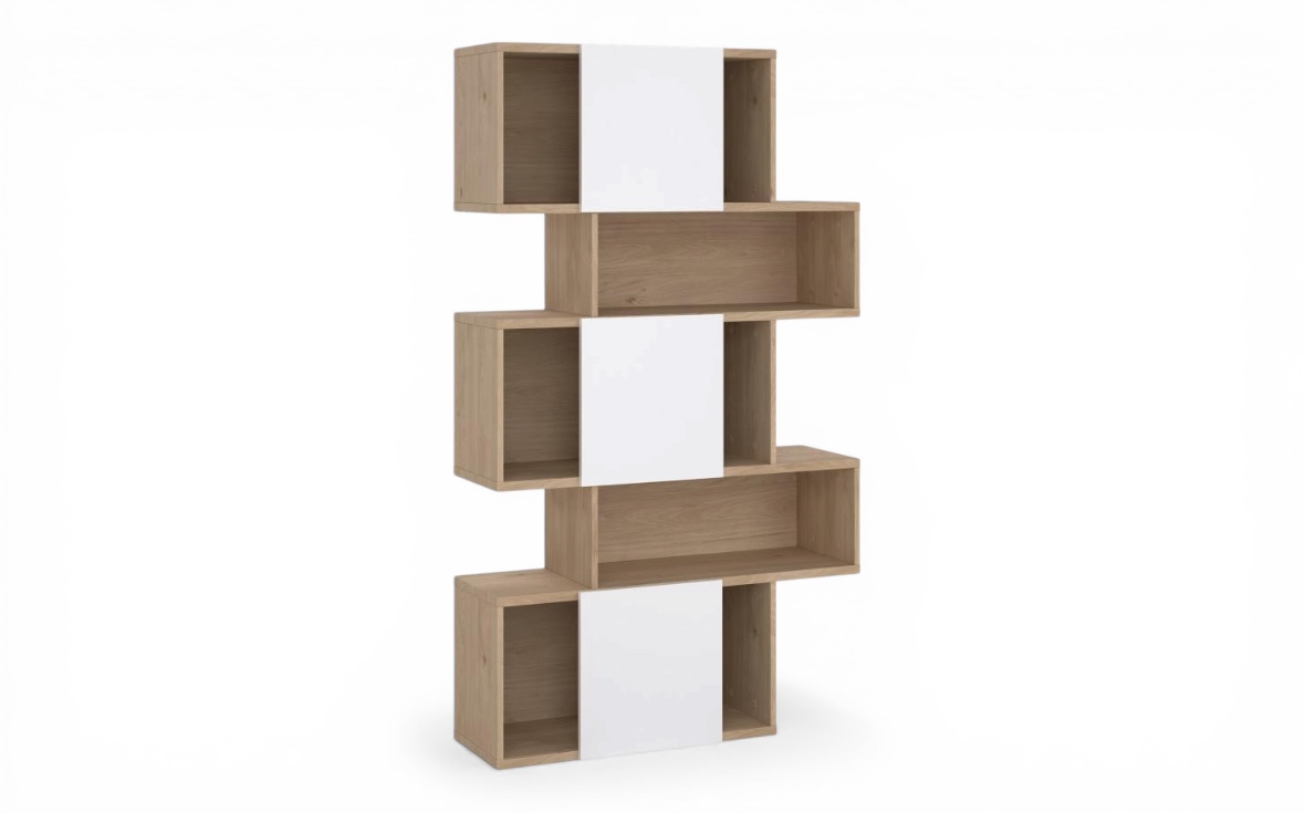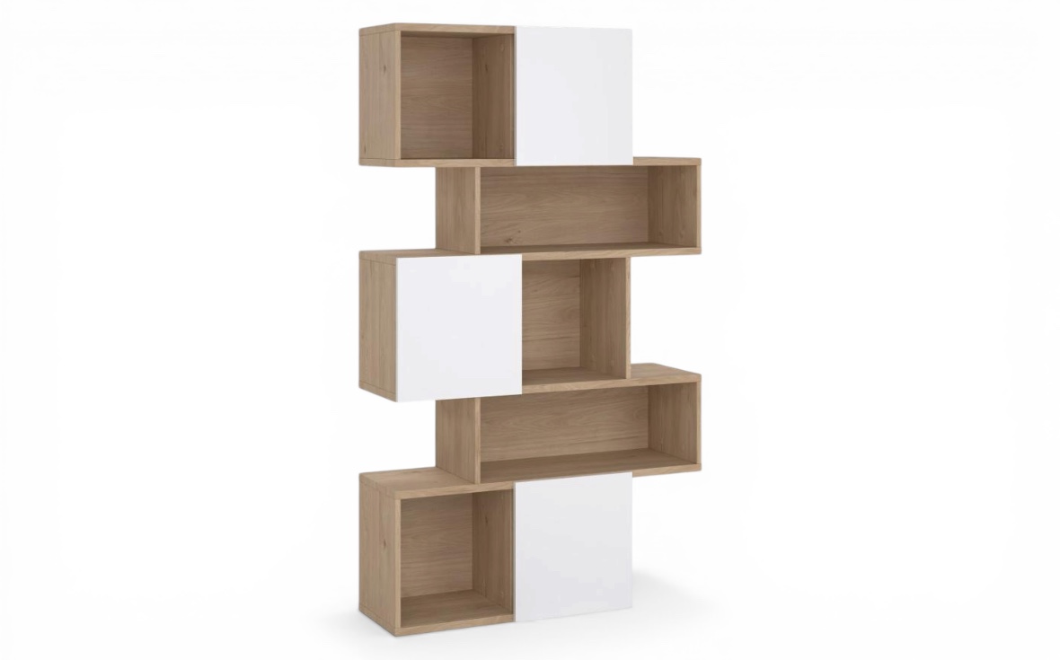 Maze asymmetrisk bokhylla med 3 skjutdörrar är en elegant och modern möbel som lyfter ditt hem. De asymmetriska formerna skapar ett iögonfallande uttryck, samtidigt som de rymliga hyllorna ger plats för böcker, dekorationer och personliga favoriter.
