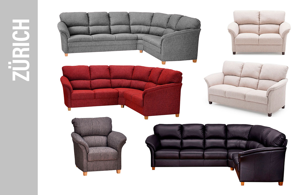 Zürich är en kombinationsoffa och den kan beställas i flera olika utföranden - som 3-sits, 2-sits, fåtölj och hörnsoffa. Även hörnsoffan finns i flera varianter.
